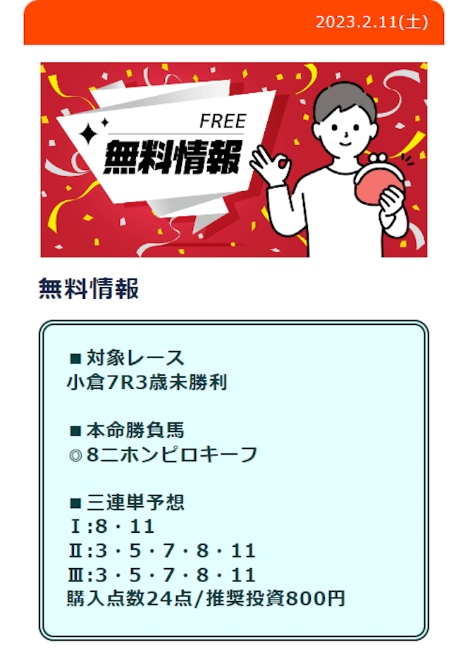 対象のレースは、2023年2月11日の小倉7R、3歳未勝利です。