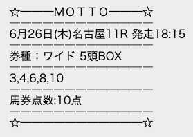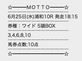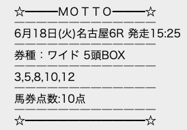 モットの無料予想は、ワイドのBOXをメインに買い目が公開されています。