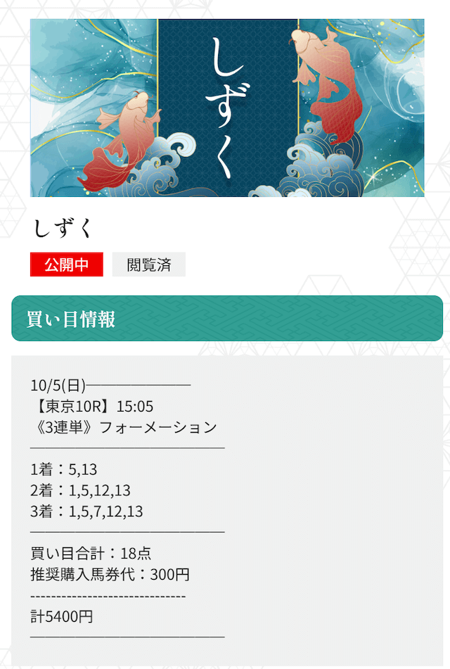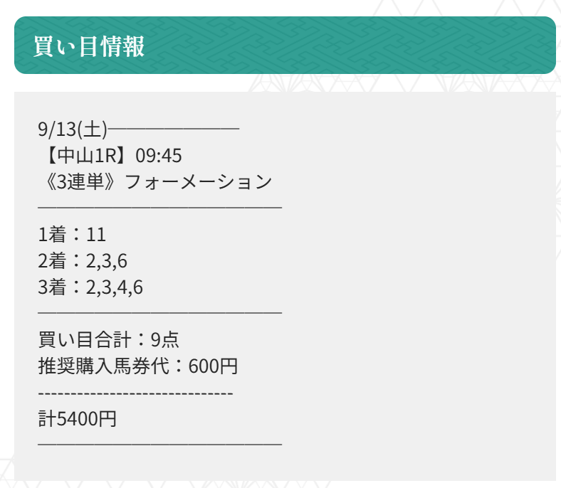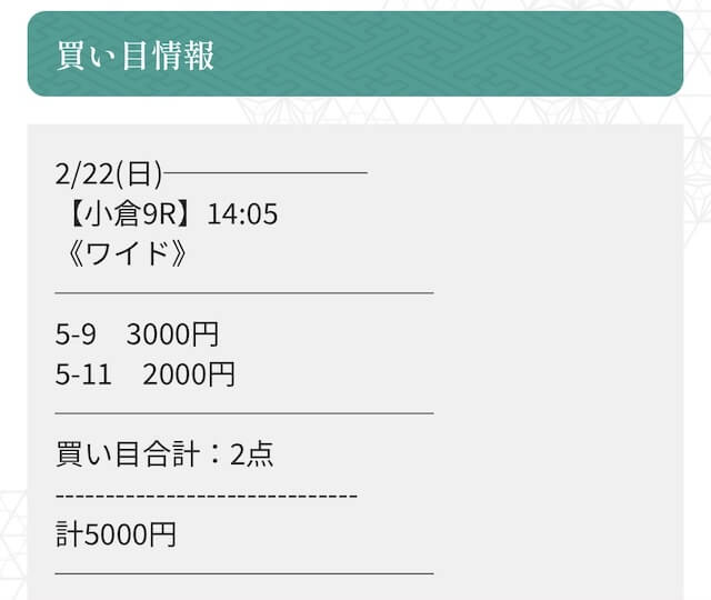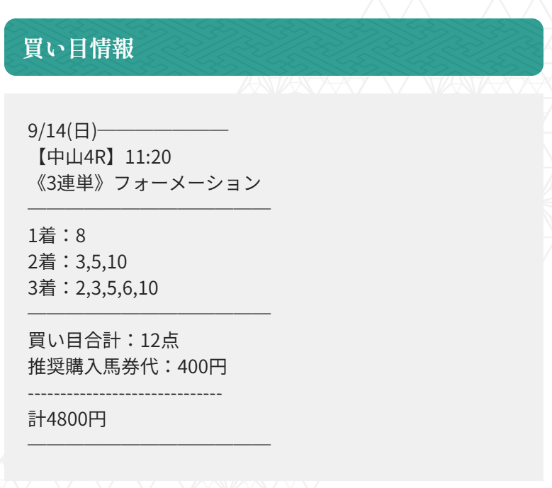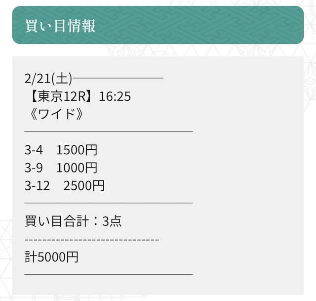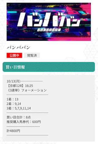 実際に公開された買い目がこちらです。