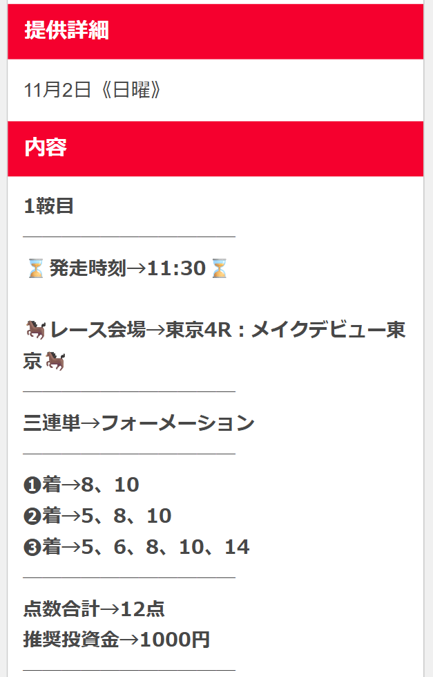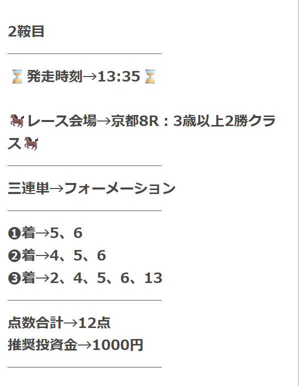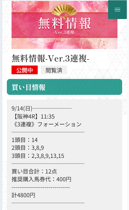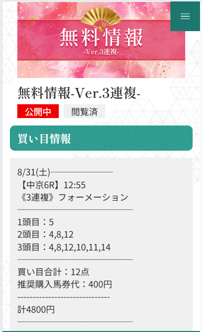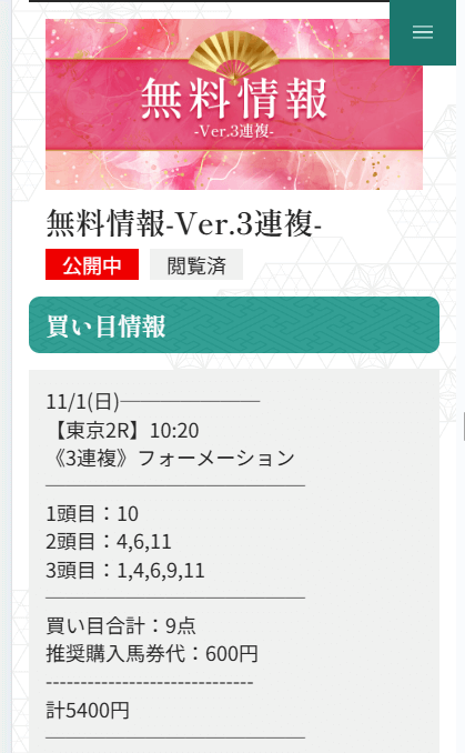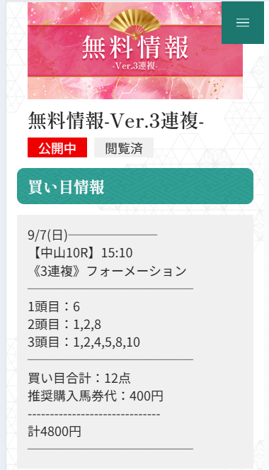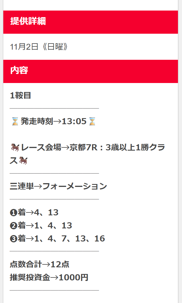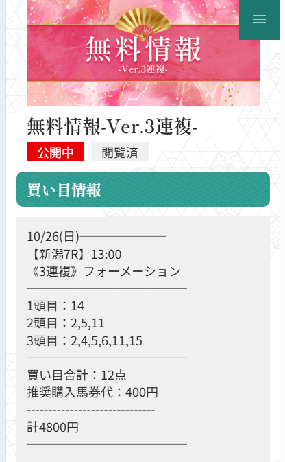 無料予想が1回当たれば購入費は貯まるので、まずは軍資金作りから始めてみてください。