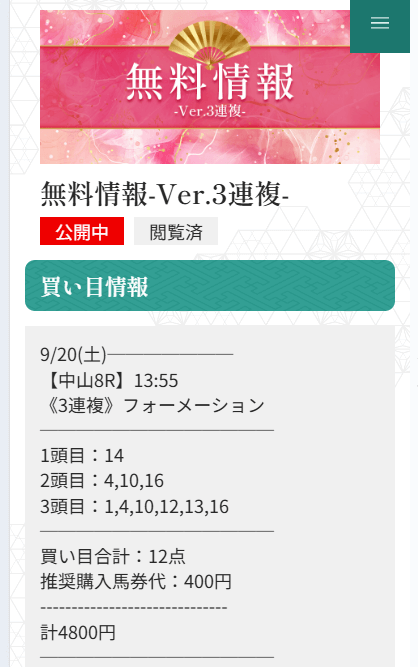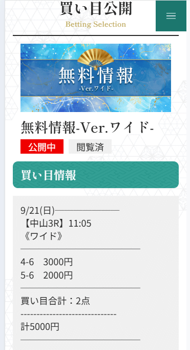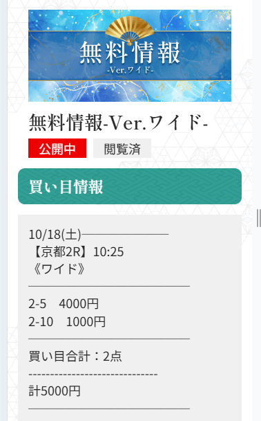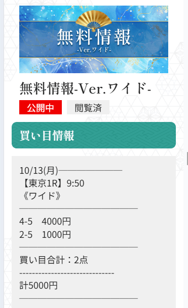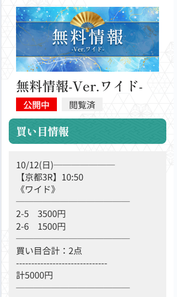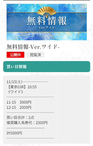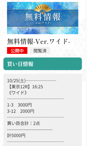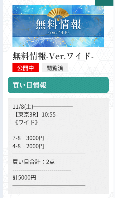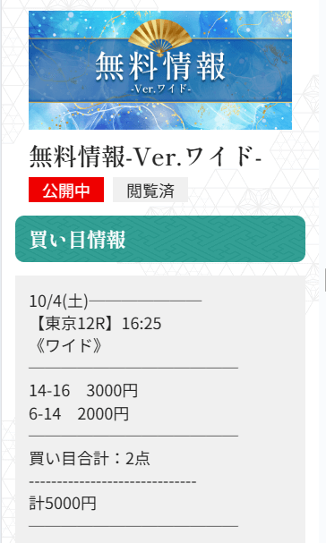 未だにワイドで1点3,000円〜5,000円で公開される予想に参加するのが怖いんだよね。