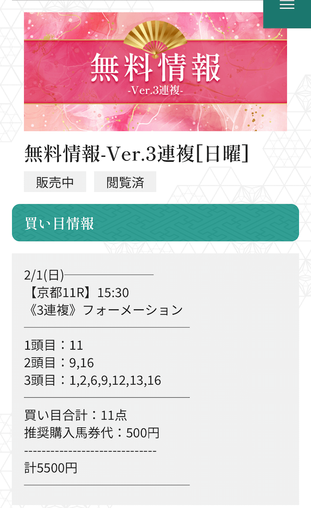 無料予想の結果を見ながら「なるほど、こういう展開読みか」と勉強させてもらってます。
