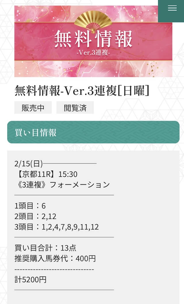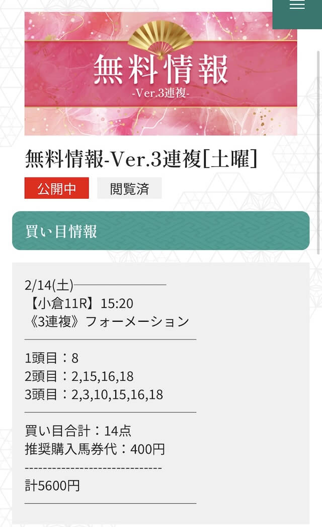 ここからは、縁の有料予想を実際に検証していきます。