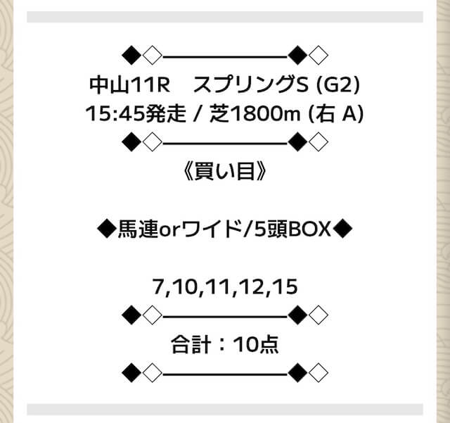 投資金額の指定はなく、1点100円での購入も考えましたが、ワイドを100円で買ったところでリターンに期待はできません。