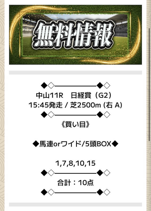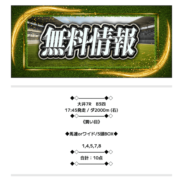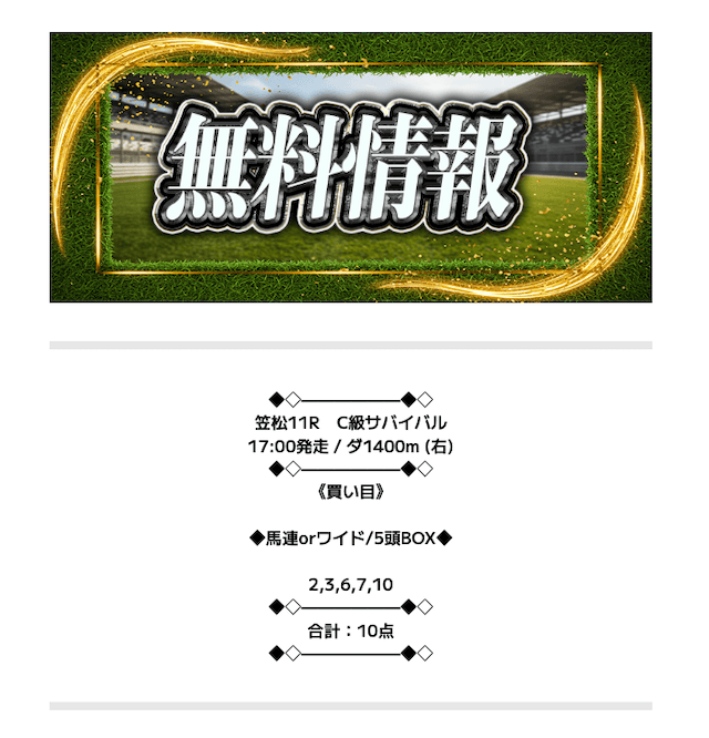 無料情報の精度は軸馬がしっかり来るから買い方次第で勝てるサイトですよね。