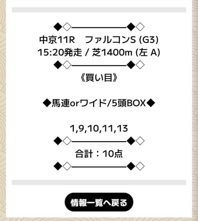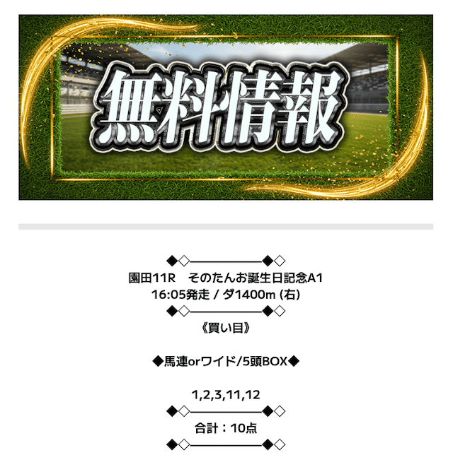 引き続きニジュウマルの無料予想が当たるのか検証を行っていきます。