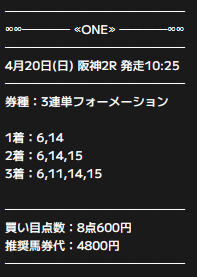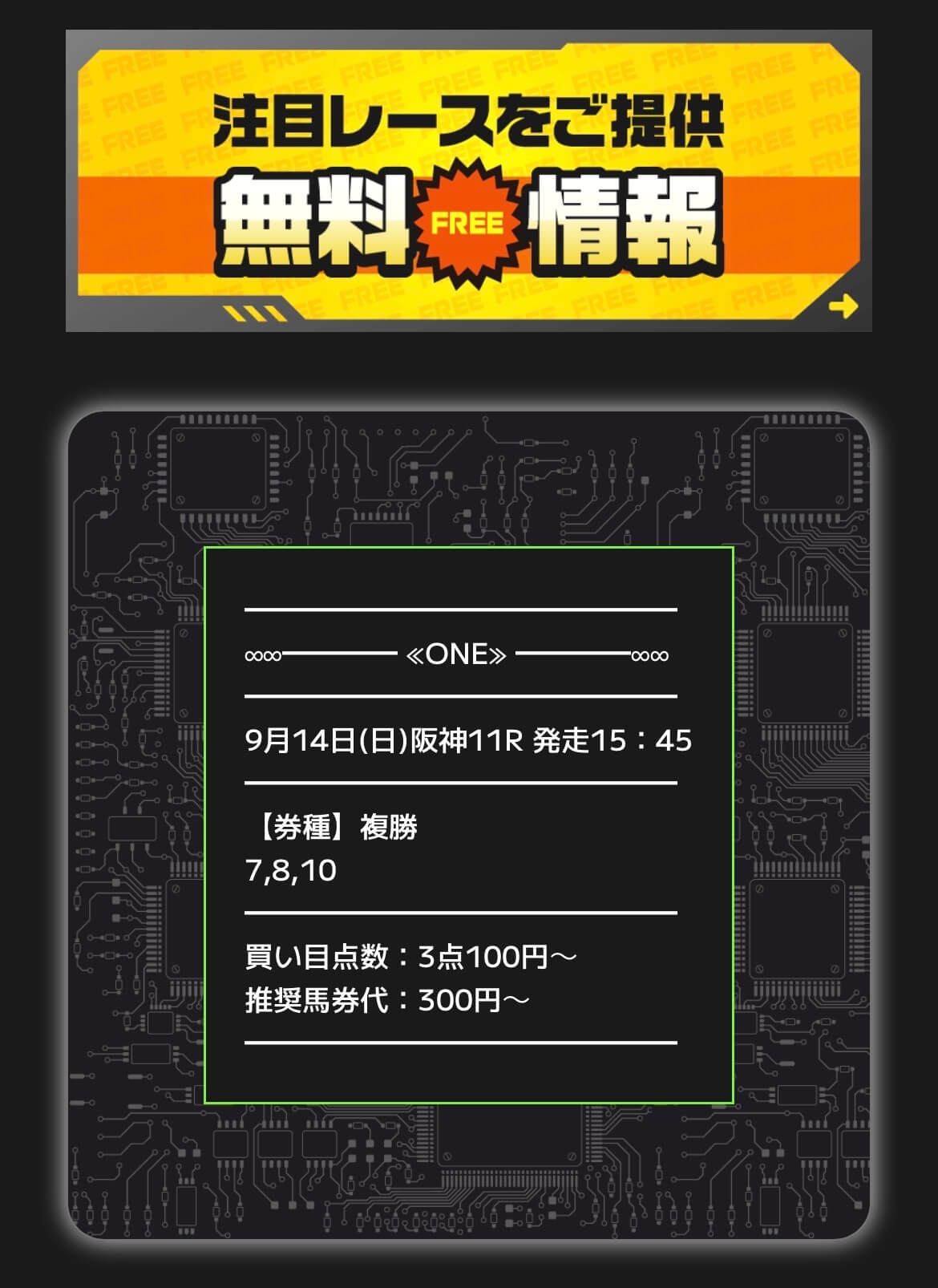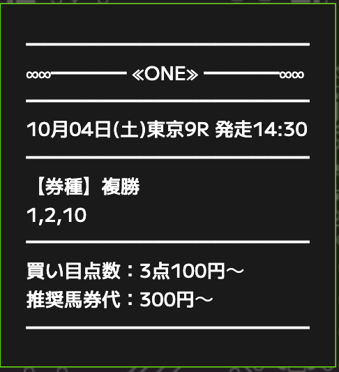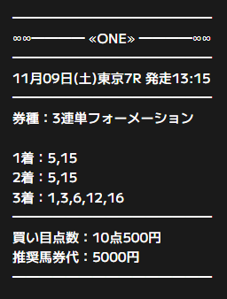 ONE(ワン)は、業界ナンバーワンの的中精度を宣言している競馬予想サイト。