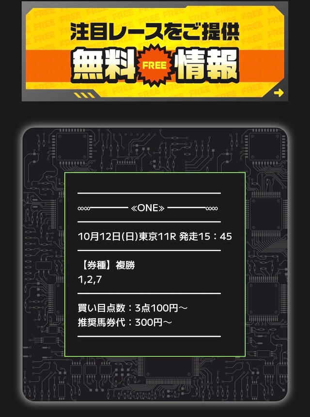 複勝の無料情報を出してくれるんですけど、かなり当たります。もちろん有料の方が稼げることは確かですけど