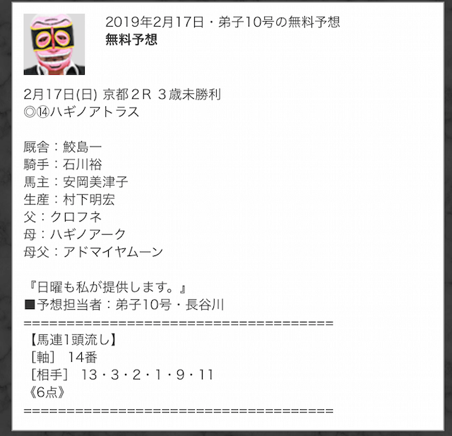 それでは早速、俺の競馬予想が公開する無料予想から調査していきたいと思います。