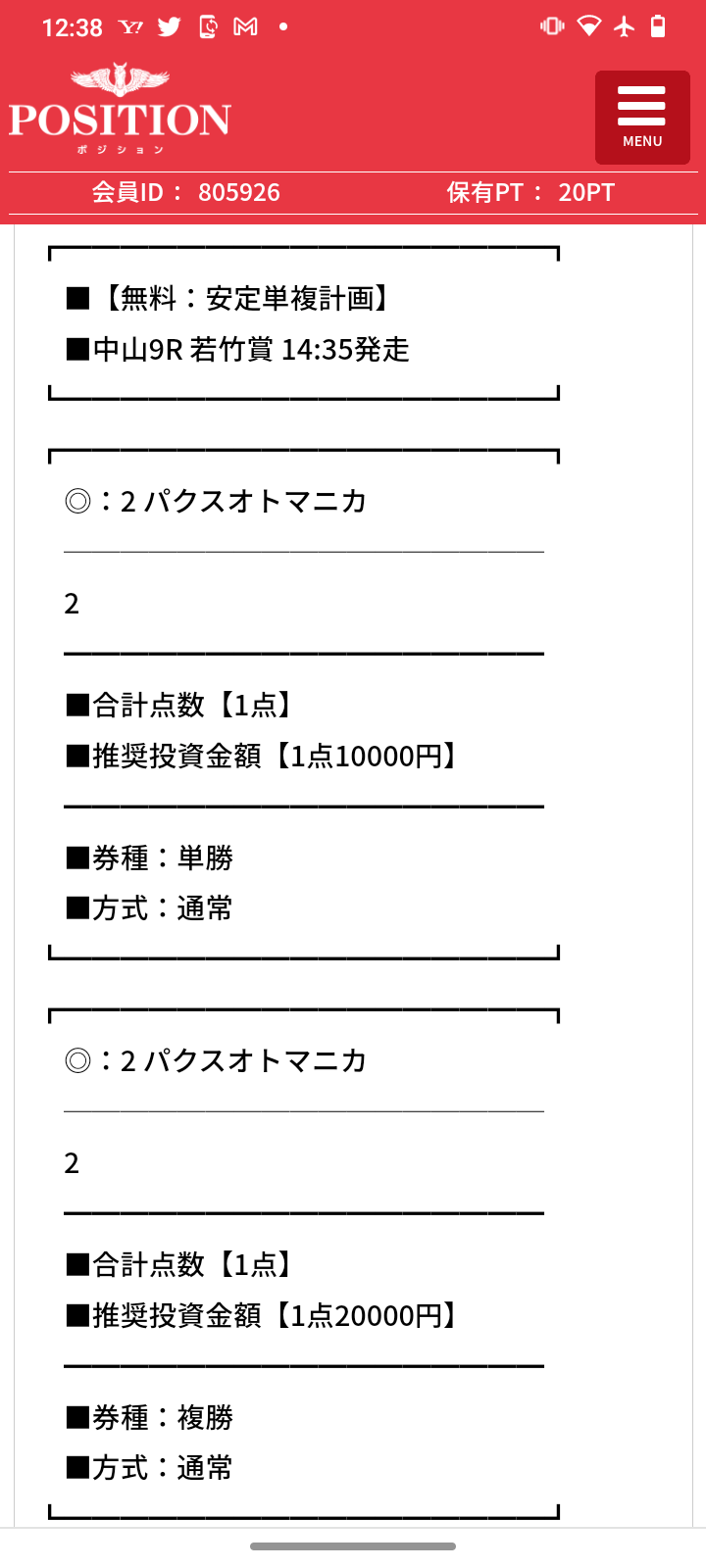 安定単複は毎週のように的中していますし、無料でもよく的中するので必ずチェックしています♪
