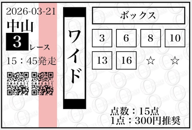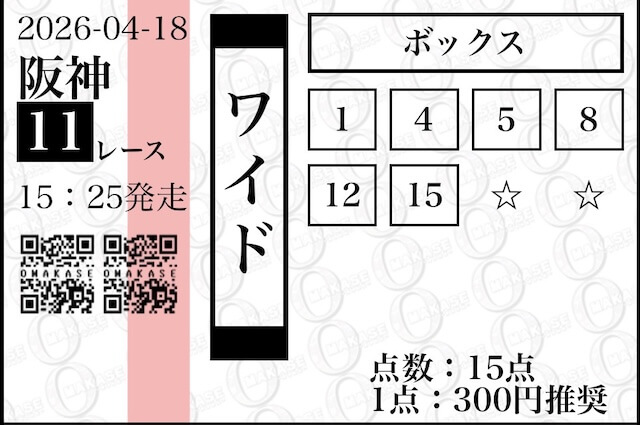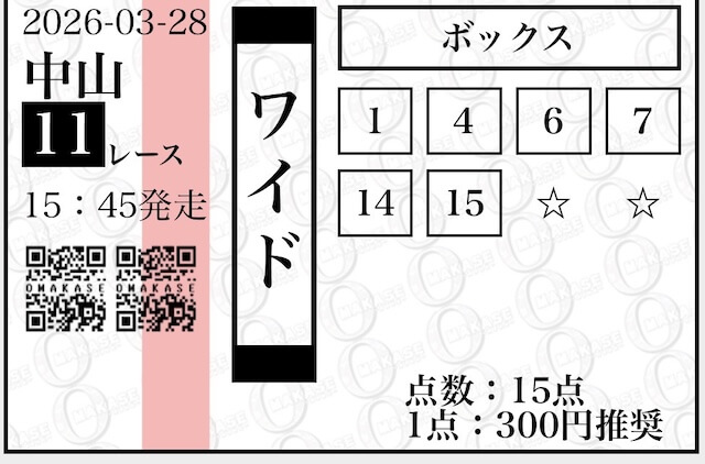 OMAKASEが公開している無料予想の券種はワイド。