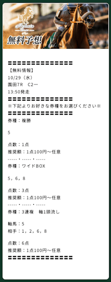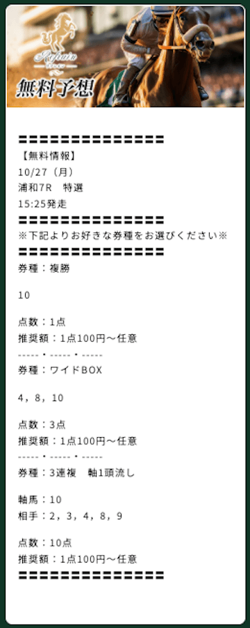 有料予想のプラン料金がちょっと高いかな〜って感じるね。無料予想が当たるからいいんだけど、もう少し安くできないもんかね。