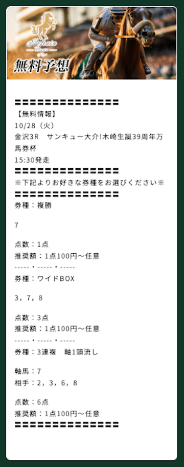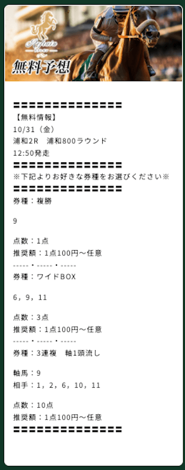 いろいろな券種で予想公開してくれてるのが嬉しい。その日の気分とかで使い分けられるからいいね