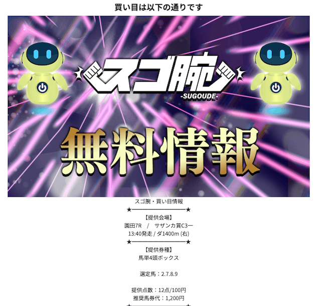 今回は、スゴ腕という競馬予想サイトを検証します。