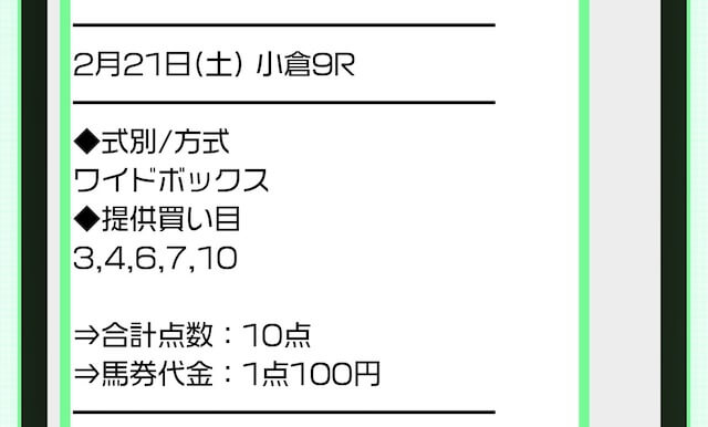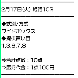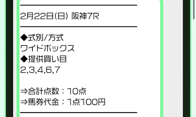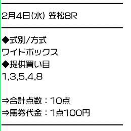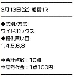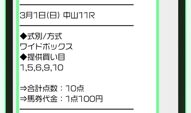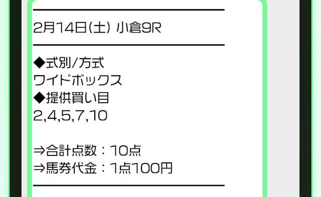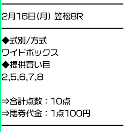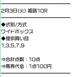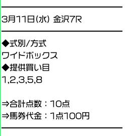 実際に公開された買い目がこちら。