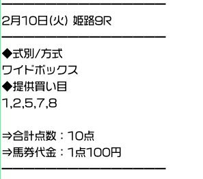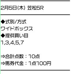 買い方は5頭ボックスで点数は合計で10点です。