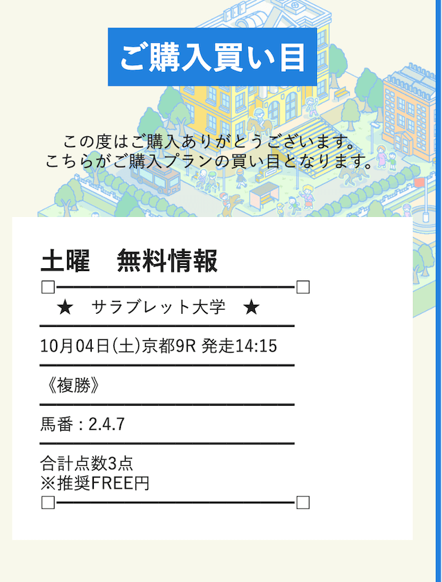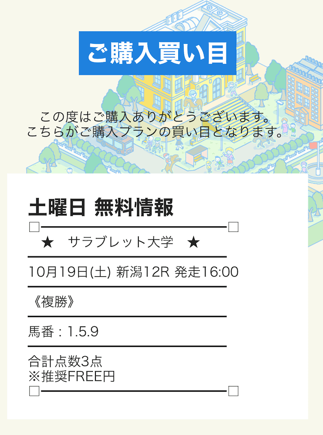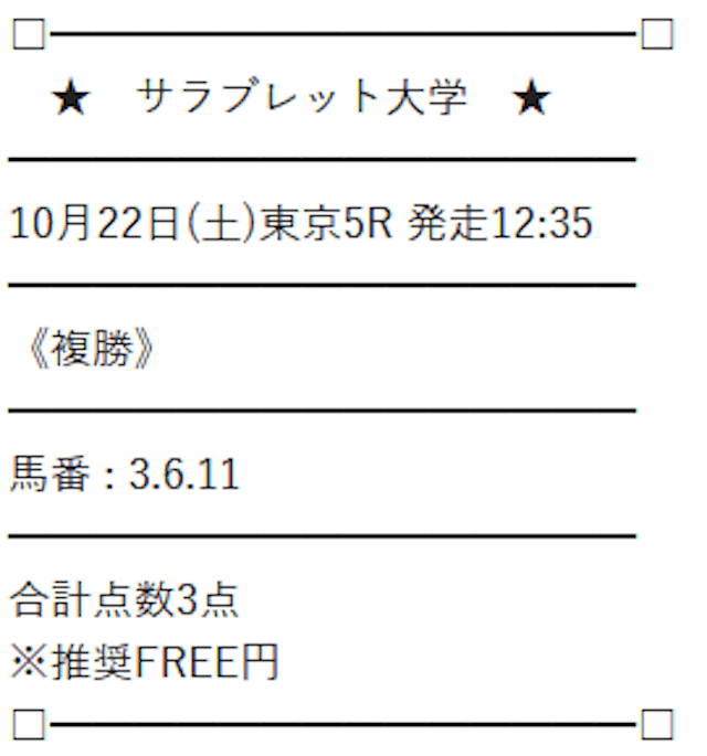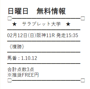 ここからは、サラブレッド大学が公開する予想に自腹で参加していきます。