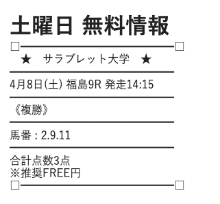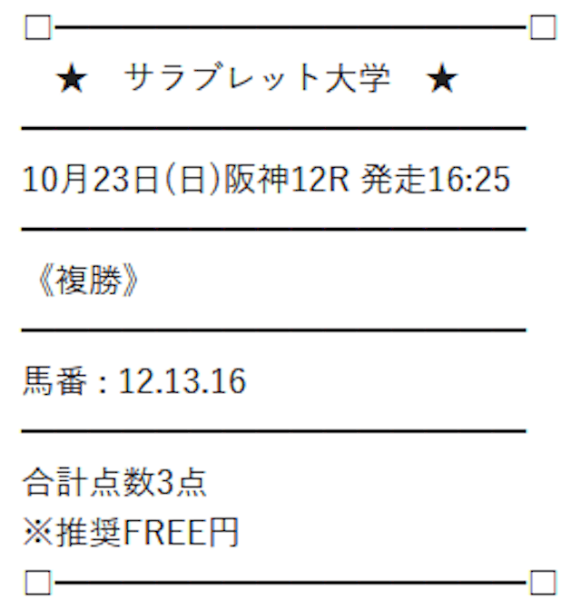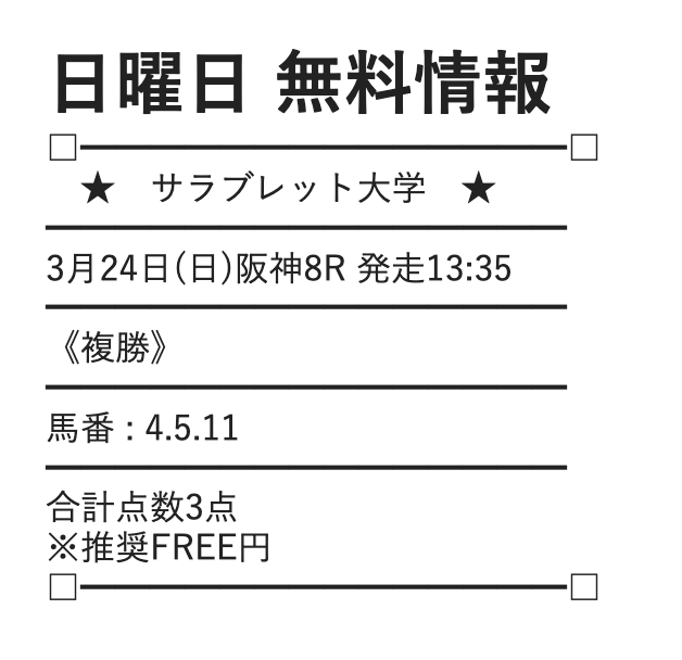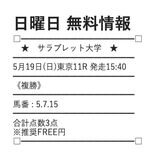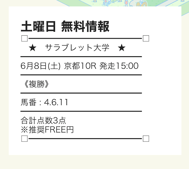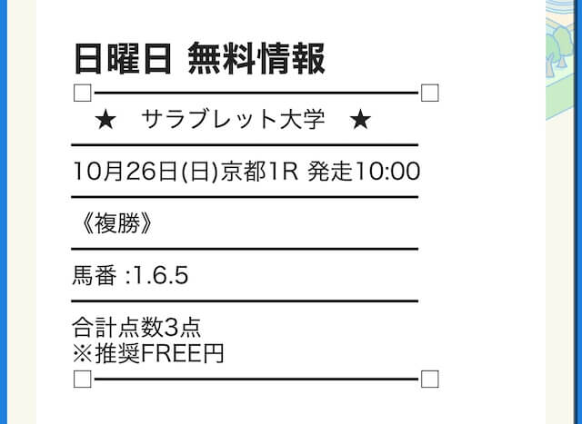サラブレッド大学の無料予想は、券種を複勝に絞って公開しているようです。