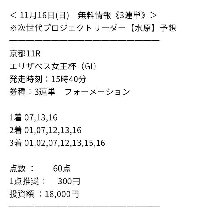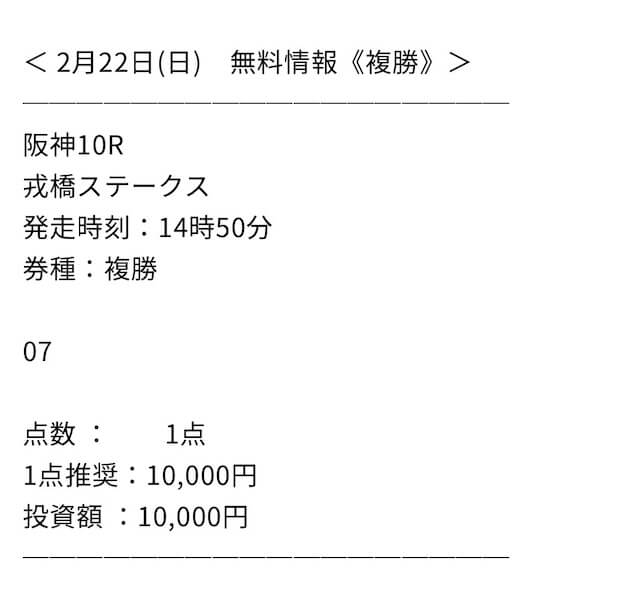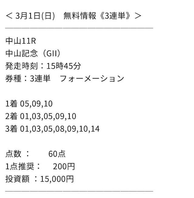 まぁ競馬予想に長けた人が予想してるそうで、期待しかない