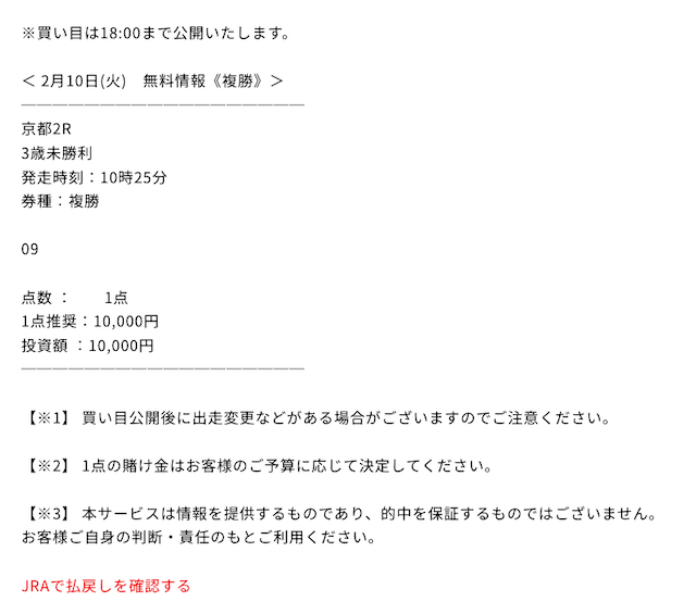 この間ようやく的中ファクターに参加できて的中して、有料予想はコンプリートしたと思っていたのに。購入型情報って巡り合わせだからタイミング合わないとなかなか参加できない…
