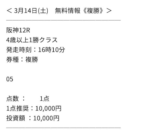 はじめての参加でしたが、80万も儲かりました!競馬素人でもこんなに簡単に当てれるなんて感動です!今度は100万以上当ててほしいです~なので、ここの書き込みみて参加する情報選びたいと思います!!