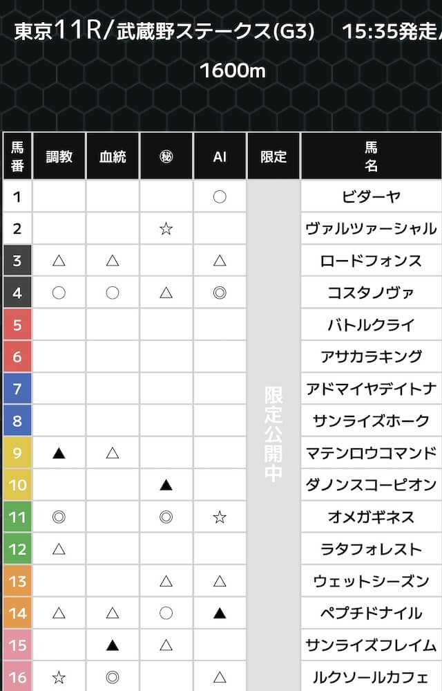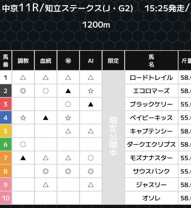 中央競馬の無料予想は、印と推奨馬5頭の公開なので、高齢者には少しわかりづらいです。どの券種(3連複か3連単か)を、何点買いで、いくら購入すればいいのか、明確な指示が欲しかったです。地方競馬のように買い目を丸ごと提供してくれる方が、安心して馬券を購入できます。