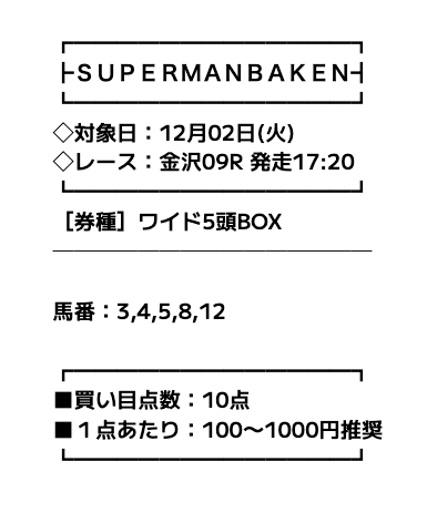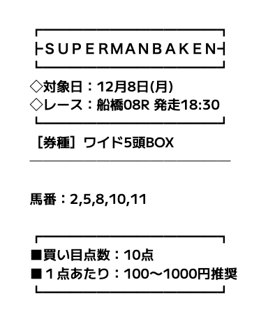 スーパーマンバケンは『ローリスクハイリターン』をモットーにした競馬予想サイト!