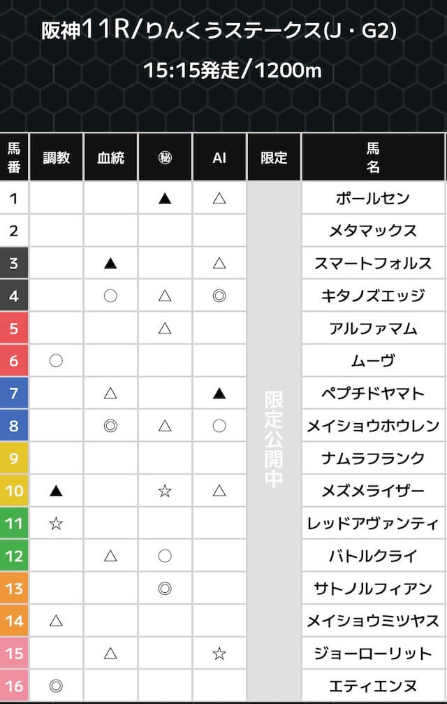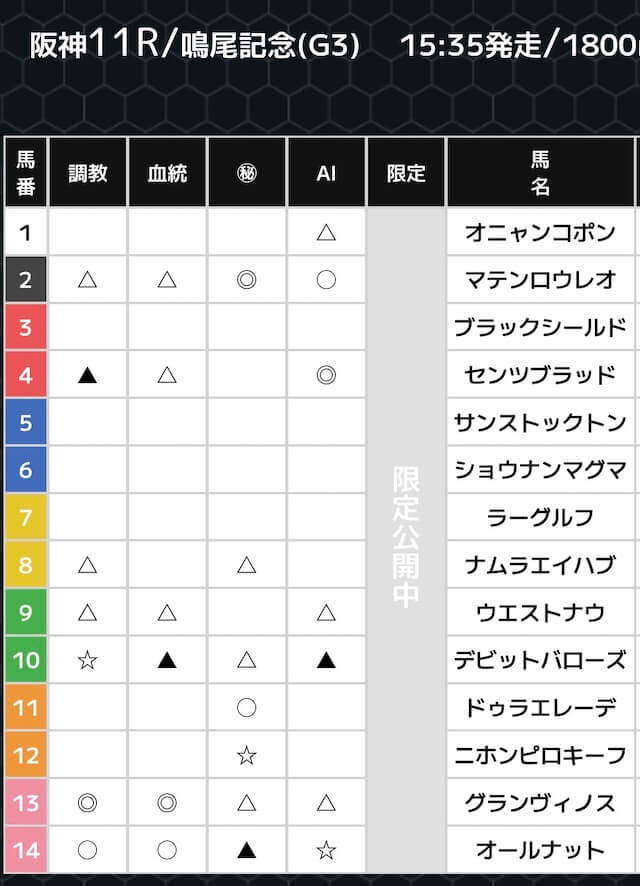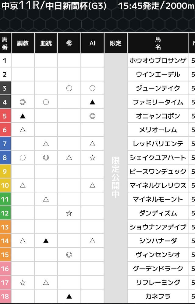 スーパーマンバケンの無料予想は、中央競馬は印。地方競馬は買い目で提供されます。