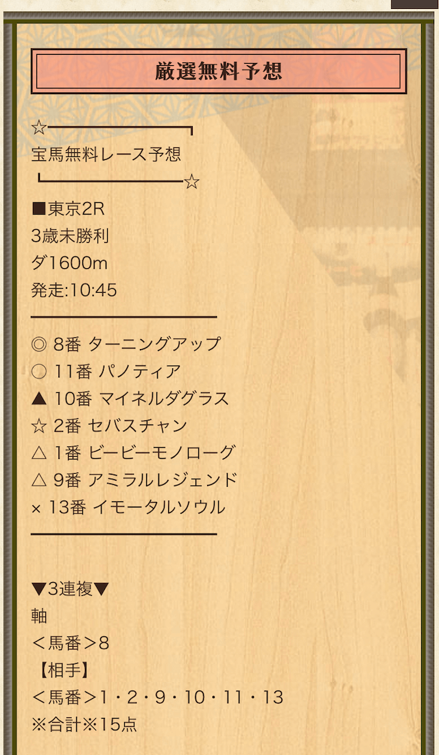無料予想だったの3レースで旅行資金が貯まりましたw