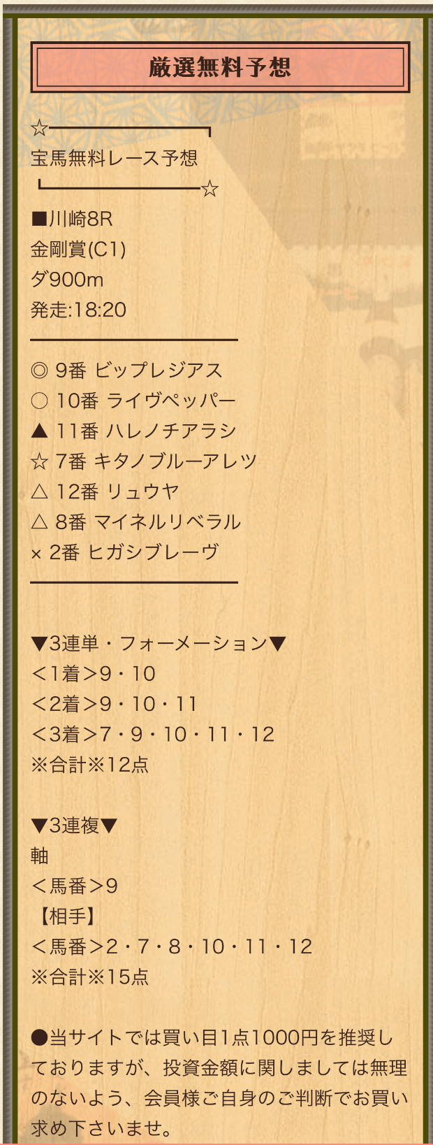 今回見つけたのは『宝馬』という競馬予想サイト。