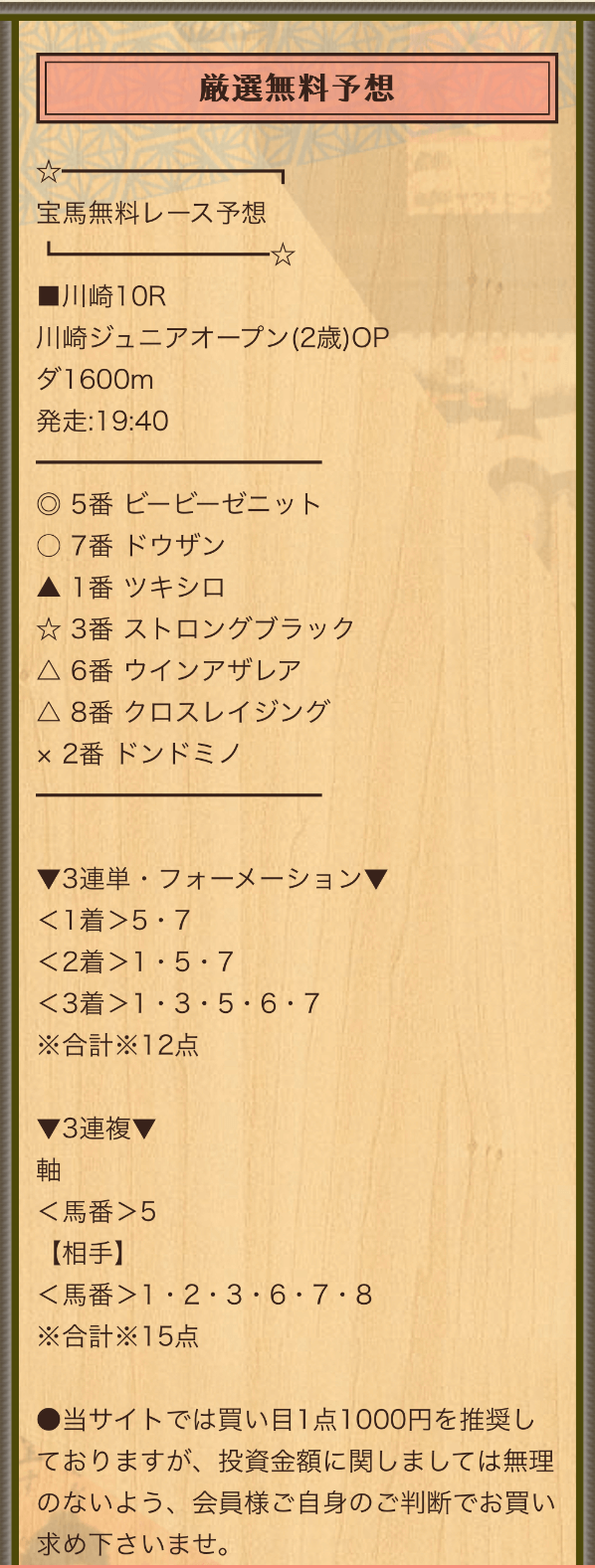 一般メディアでは決して手に入れることができないお宝情報を分析することで、高配当が見込める予想に仕上げています。