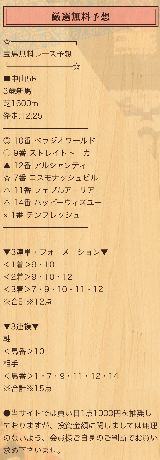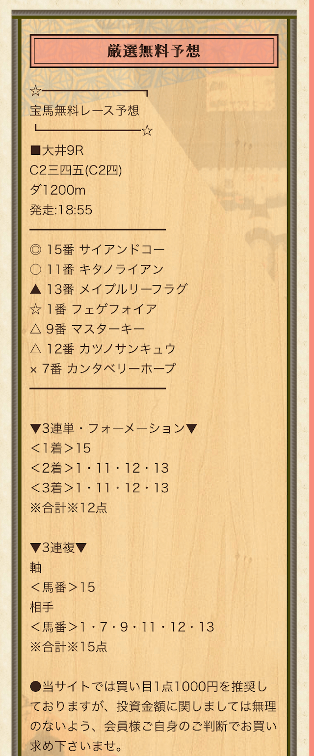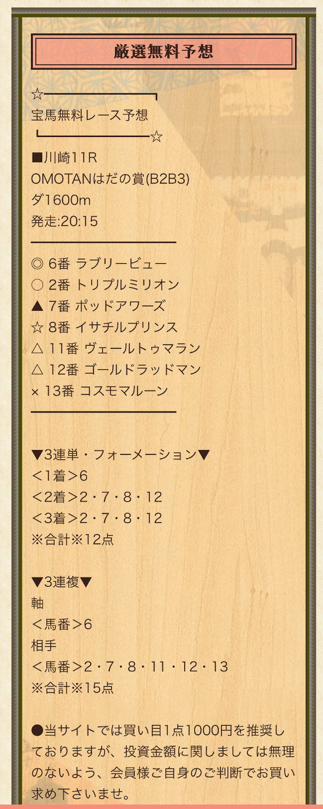 目安の軍資金が貯まったら、ニジュウマルの無料予想に移行してください。