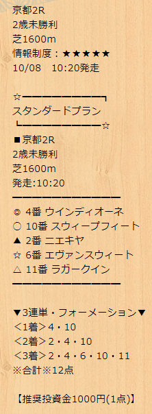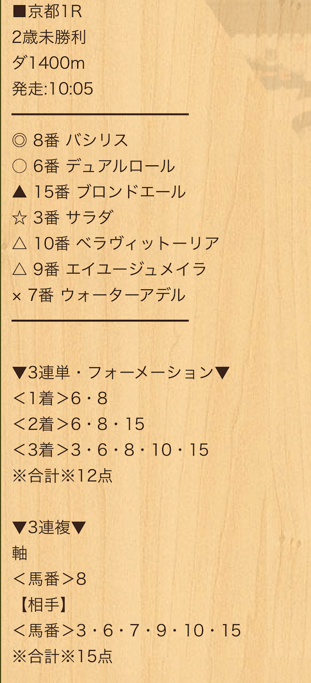 1着目に1頭しか選んでいないのは心許ない気が...。