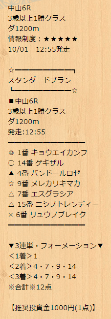 私が勝負するのは2023年9月2日の札幌12Rです。
