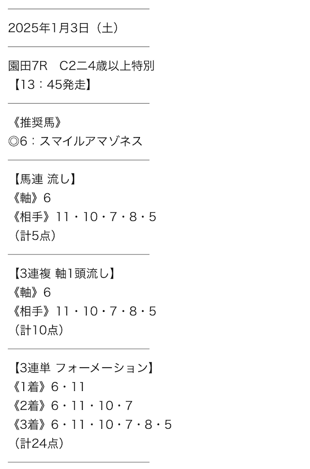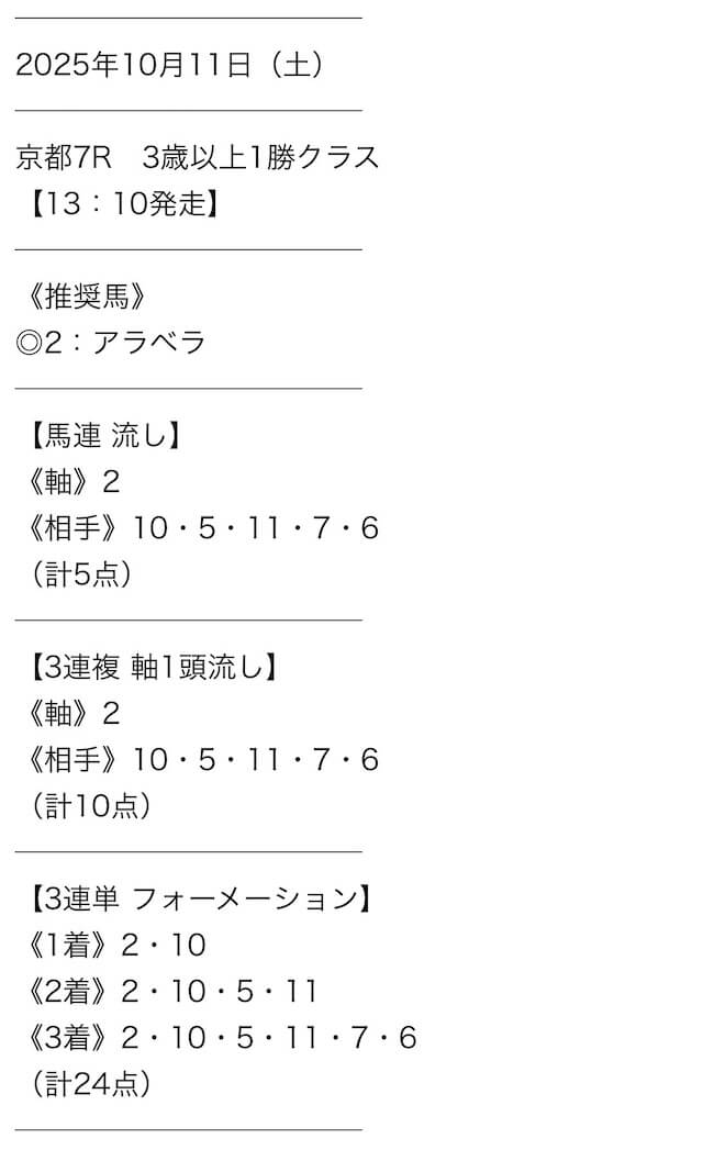 実際に公開された買い目がこちら。