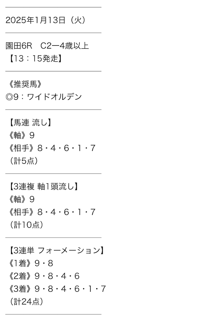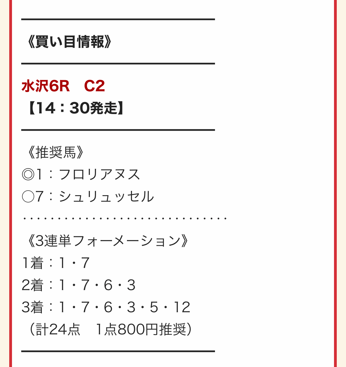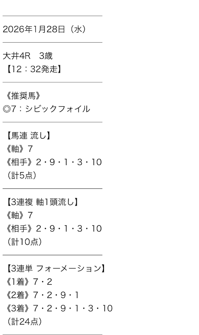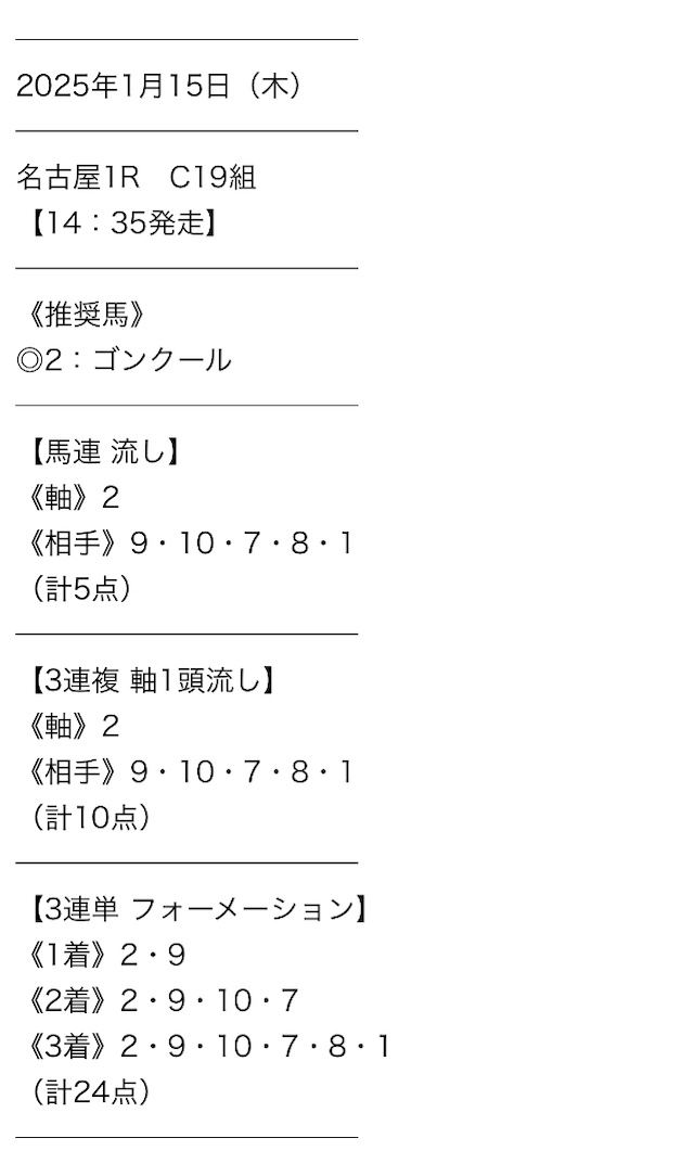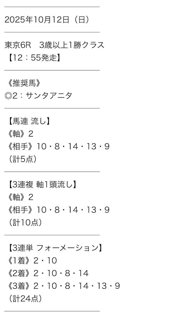 実際に公開された買い目はこちら。