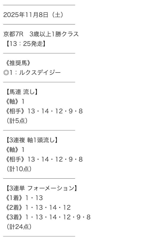 - 2025/11/8京都7R [📷]◯5,300円