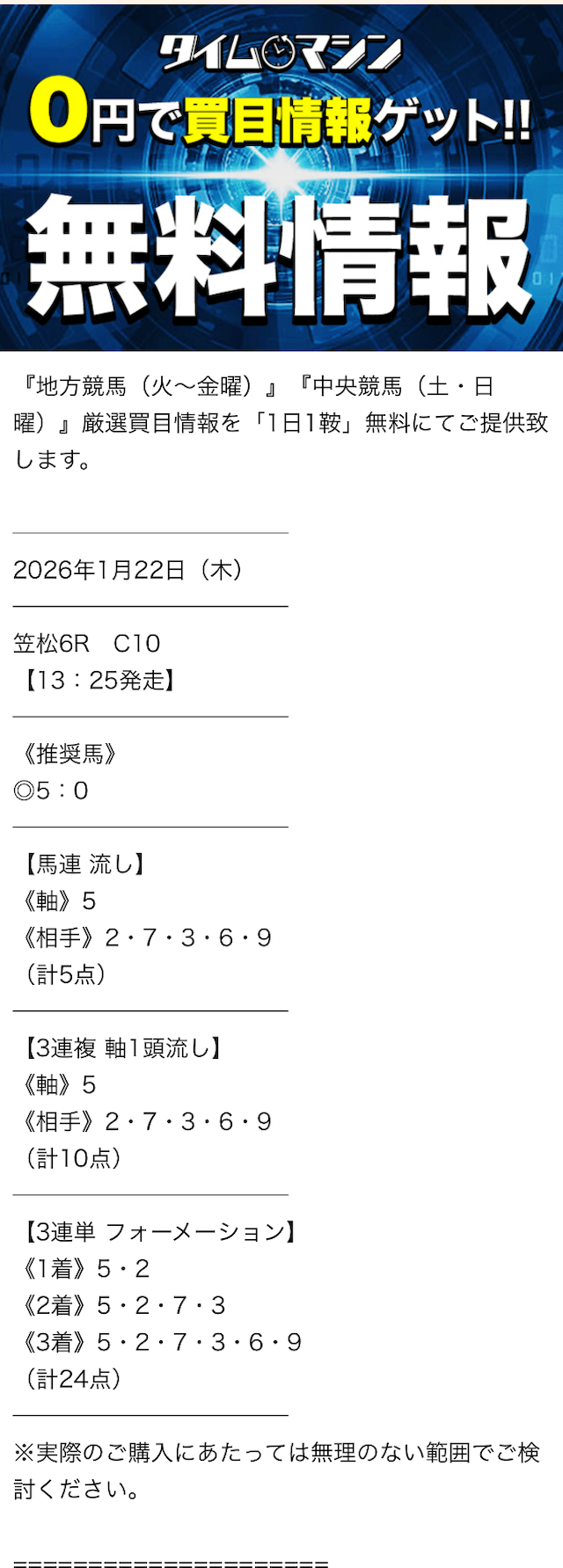 登録特典でもらえる3万のポイントだけで有料予想サイト使うことができました!