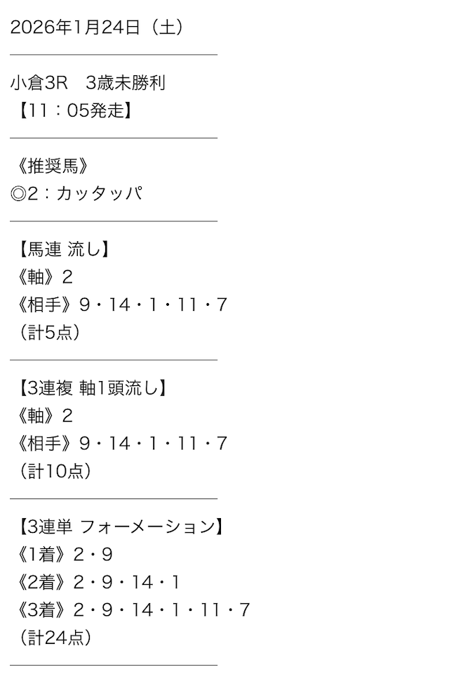 - 2026/1/25小倉6R [📷]◯6,300円