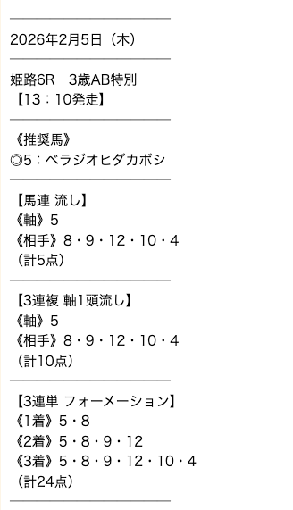 - 2026/2/5姫路6R [📷]◯5,500円