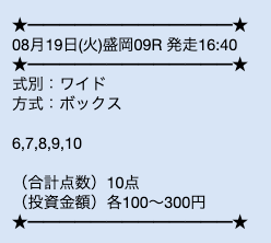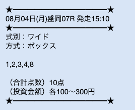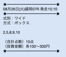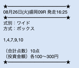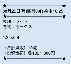 - 2025/8/26盛岡9R [📷]◯13,600円