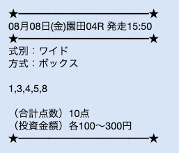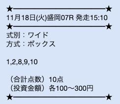 的中したレースは点数少なめなのにキレイに入ってて「おお!」ってなりました!!!