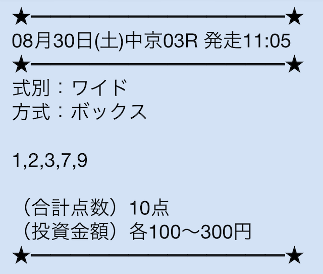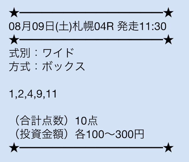 まぁそこまで大きな的中ではなかったので☆3とさせていただきましたが、夏競馬限定馬券師の情報当たりましたね。