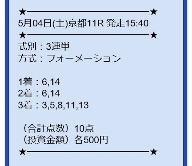 レースの方程式って前に外したことあったんで少し警戒してたんですけど、今回はしっかり当たってて手のひら返しました。買い目の精度高かったです。