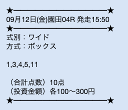 - 2025/9/30名古屋12R [📷]◯26,200円