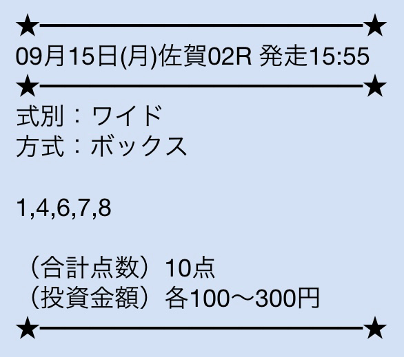 - 2025/9/15佐賀2R [📷]◯11,300円
