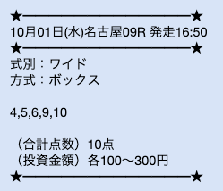 - 2025/10/1名古屋9R [📷]◯34,000円