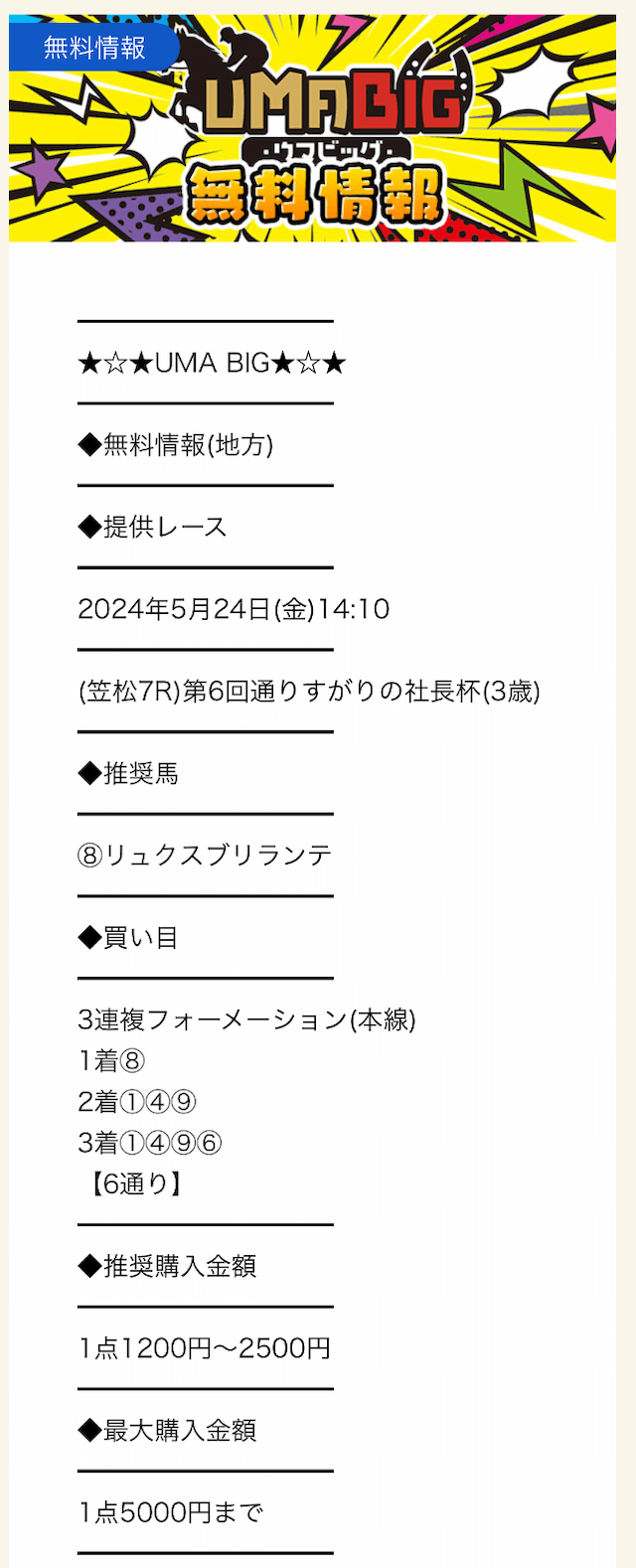 ウマビッグの無料予想は点数めっちゃ絞られてるのにちゃんと当たるのすごすぎる。