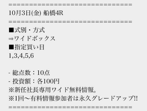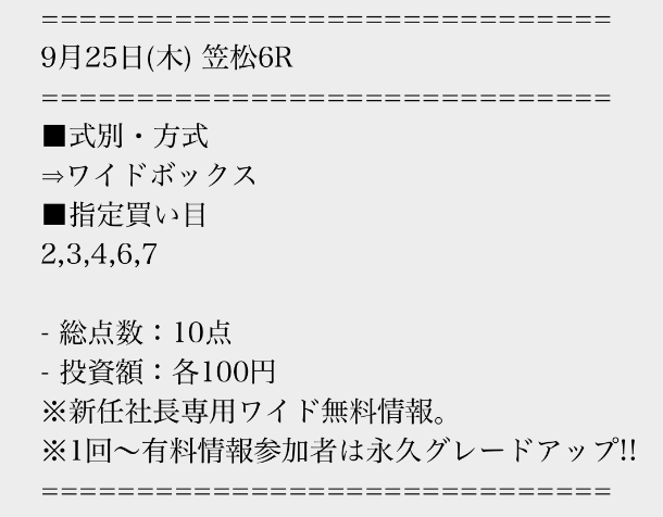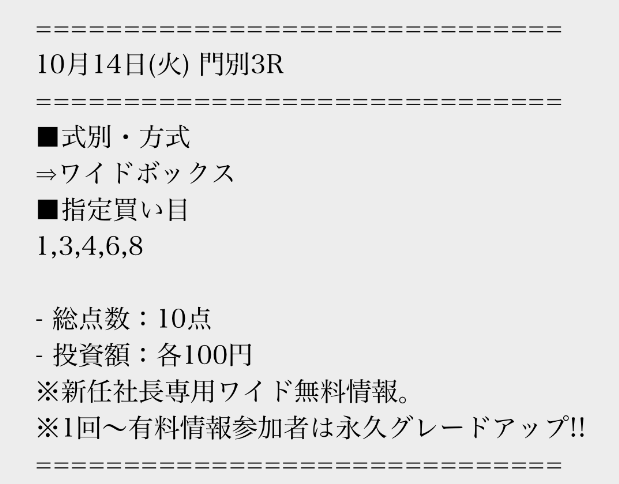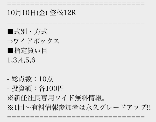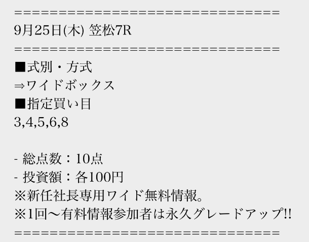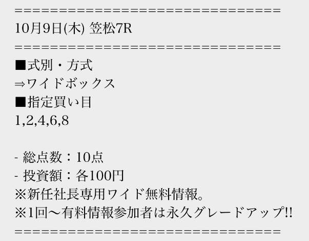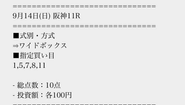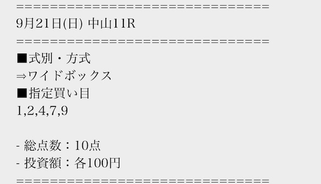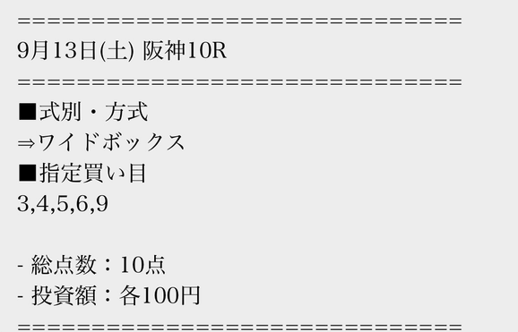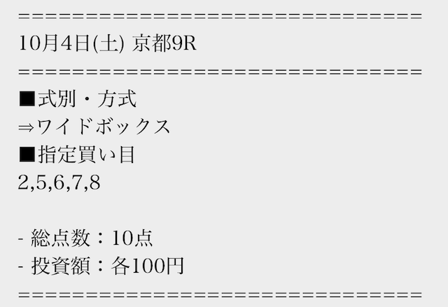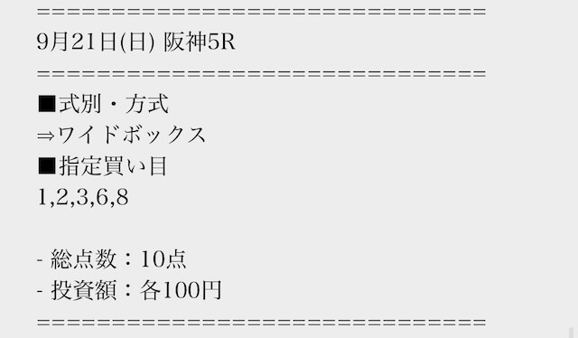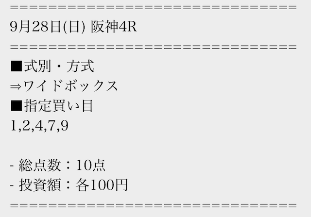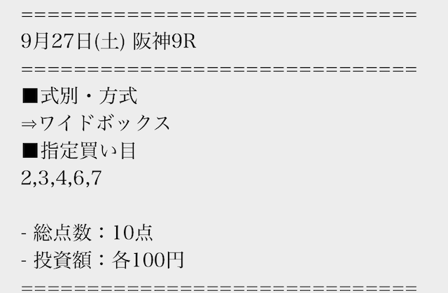 実際に公開された買い目はこちら。