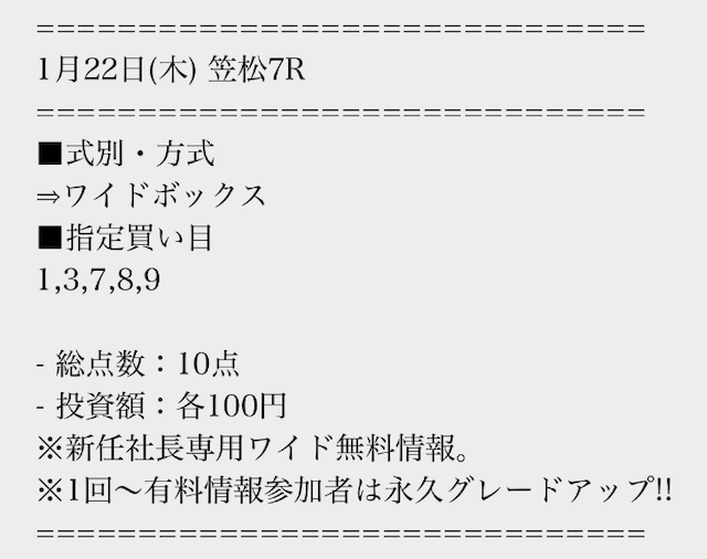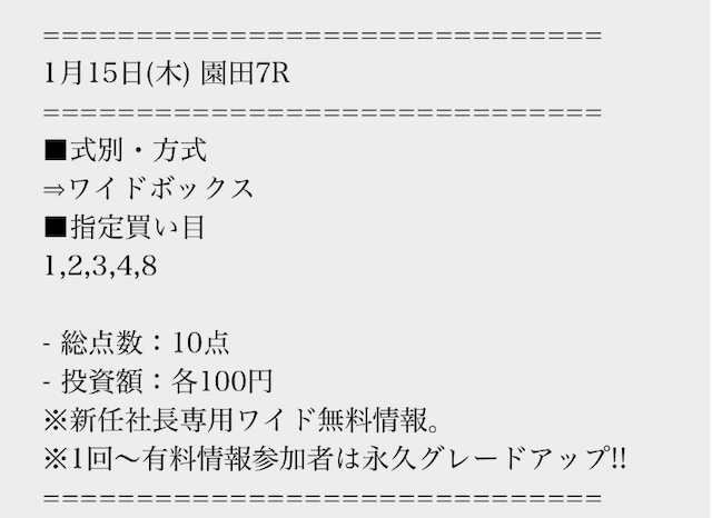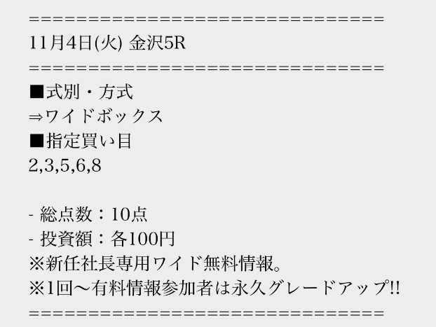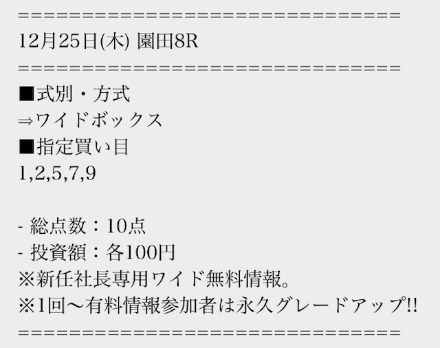 提供4鞍でも馬券代が2万円というのは、他と比較しても非常に良心的だと思います。